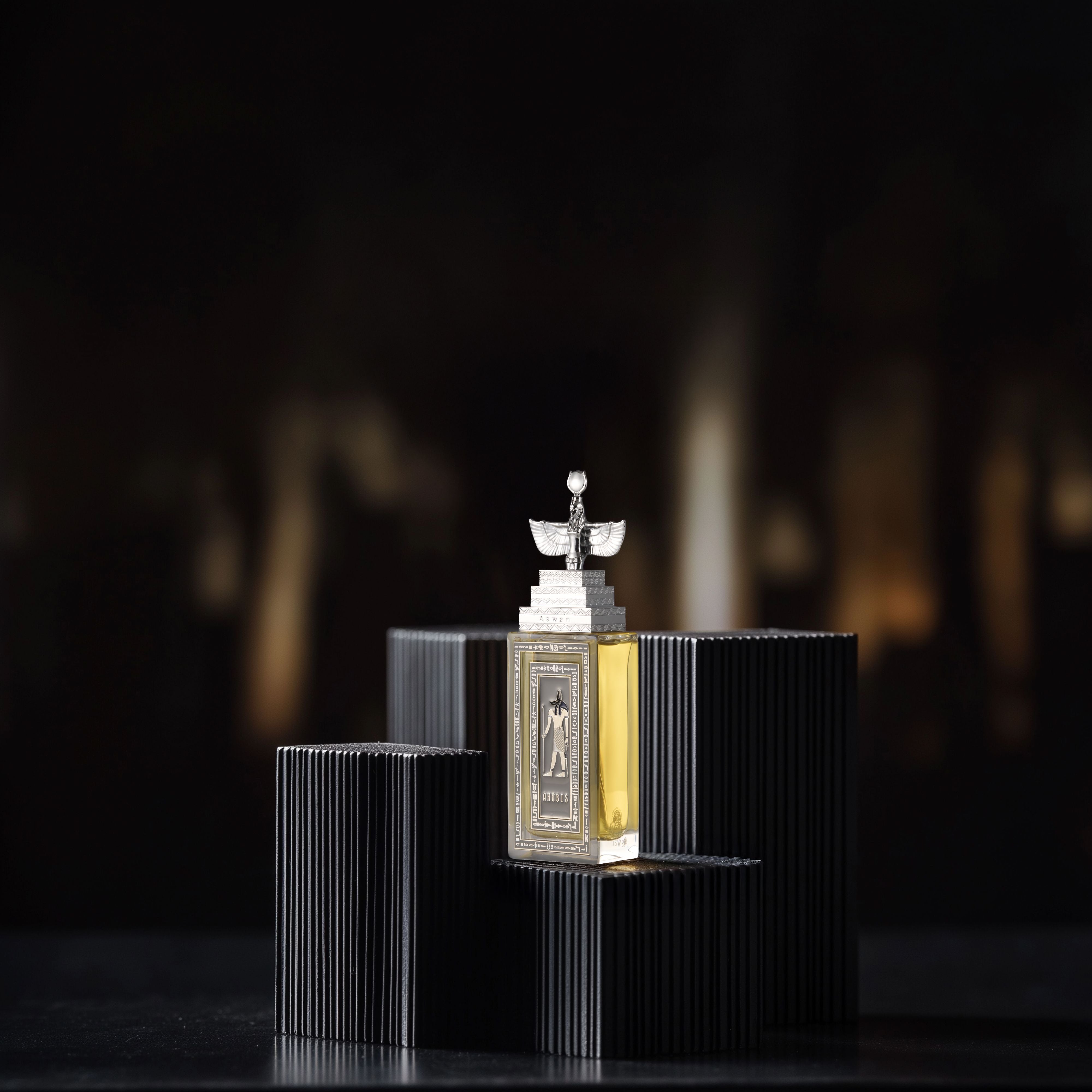 Inspired by the myths and mysteries of Ancient Egypt, this collection weaves together scent and story into a divine tapestry. Each fragrance captures the elemental forces of creation, air, earth, water, fire, and sky, distilled into olfactory form. From the first breath of existence to the eternal embrace of the afterlife, the collection explores the balance between power and grace, light and shadow, the mortal and the divine.